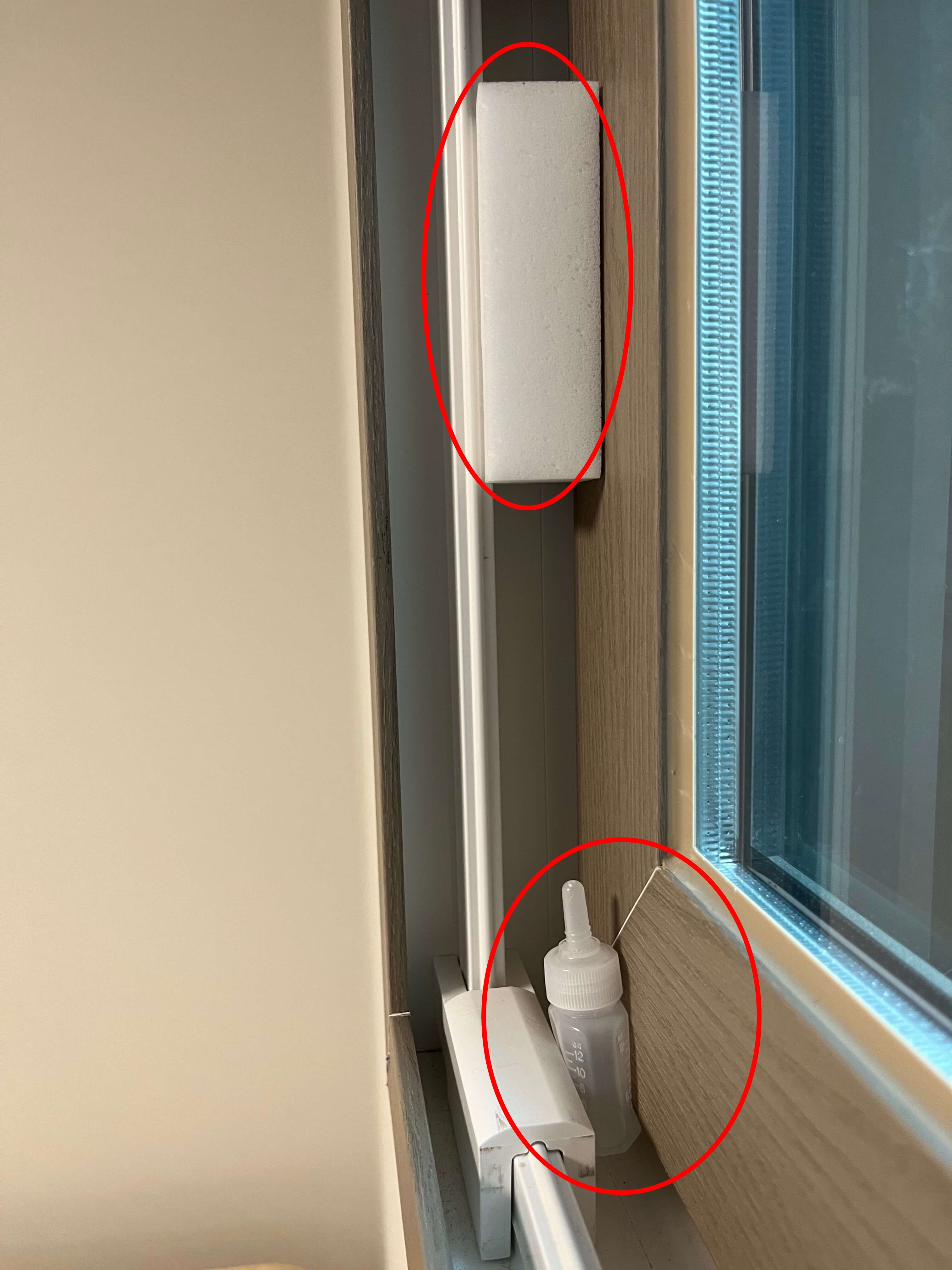 또한 창문 아래만 막는 것이 아니라 창틀 전체와 창문사이에도 백업제를 끼워두면 강풍으로 인한 창문 흔들림도 막을 수 있어 일석이조이니 참고하세요.