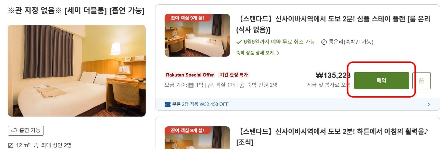 3. 라쿠텐트래블 상품 선택 후 코드복사 - "바로 예약" 버튼 클릭